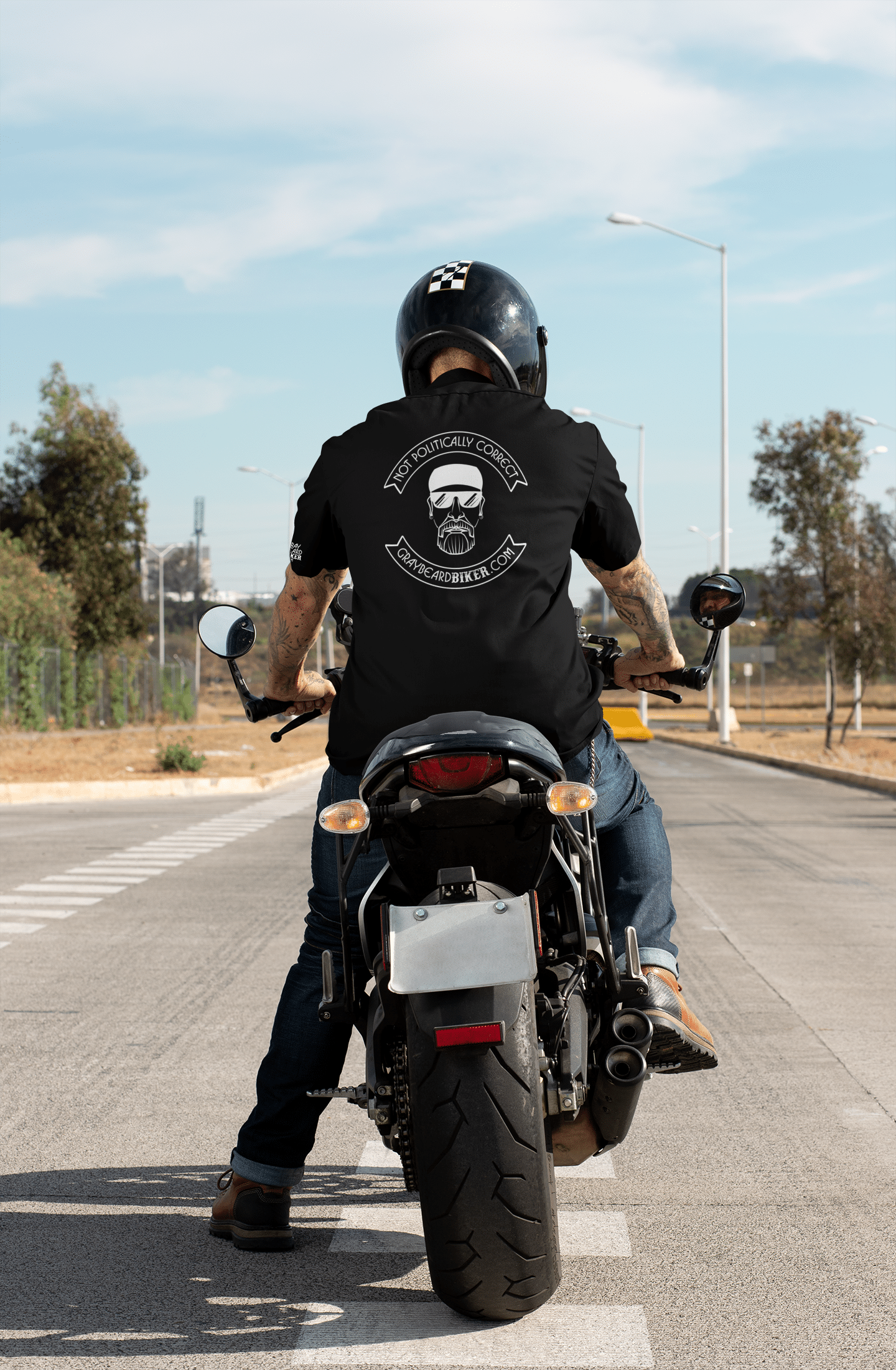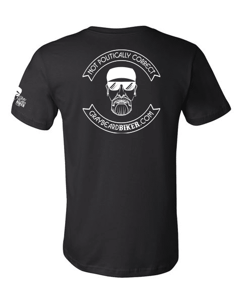 Featuring the iconic “Not Politically Correct” text on the top rocker at the back of the shirt and GrayBeardBiker.com on the bottom rocker, this design includes the typical look of a motorcycle club without the formalities of being an actual club. It’s a statement piece that showcases your rebellious nature and refusal to bow down to societal pressures.